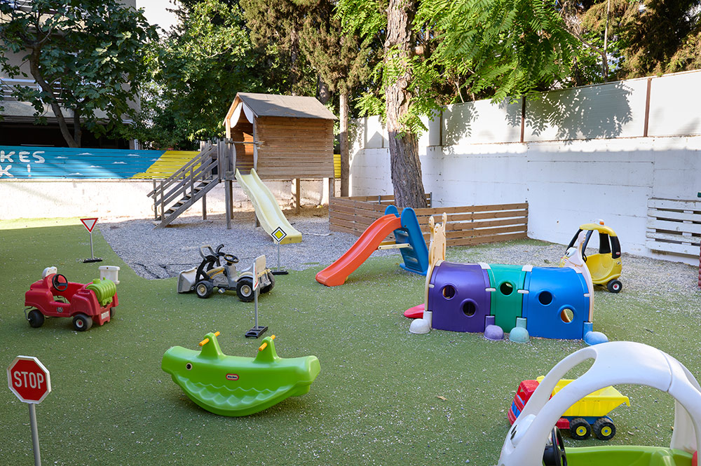 Ο κήπος μας είναι κατάλληλα διαμορφωμένος με ένα ξύλινο σπίτι, κούνιες, αμμοδόχο, χώρο για κηπουρική και χώρο κυκλοφοριακής αγωγής.
